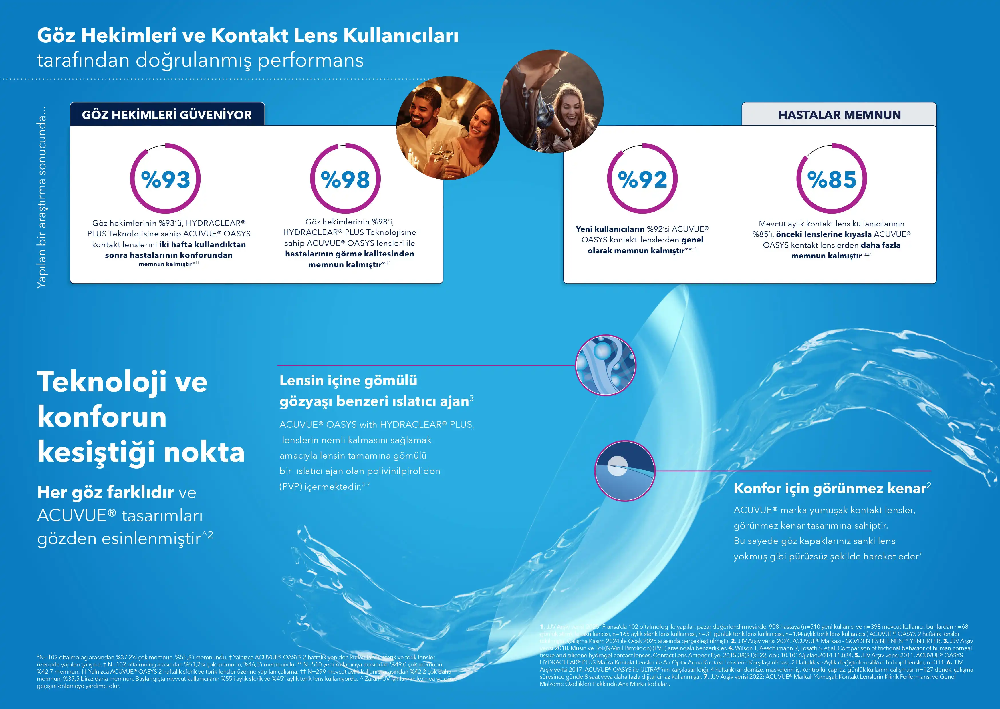 Acuvue Oasys’in öne çıkan özelliği olan Hydraclear Plus teknolojisi, gözyaşı filminin doğal yapısından ilham alınarak geliştirilmiştir.