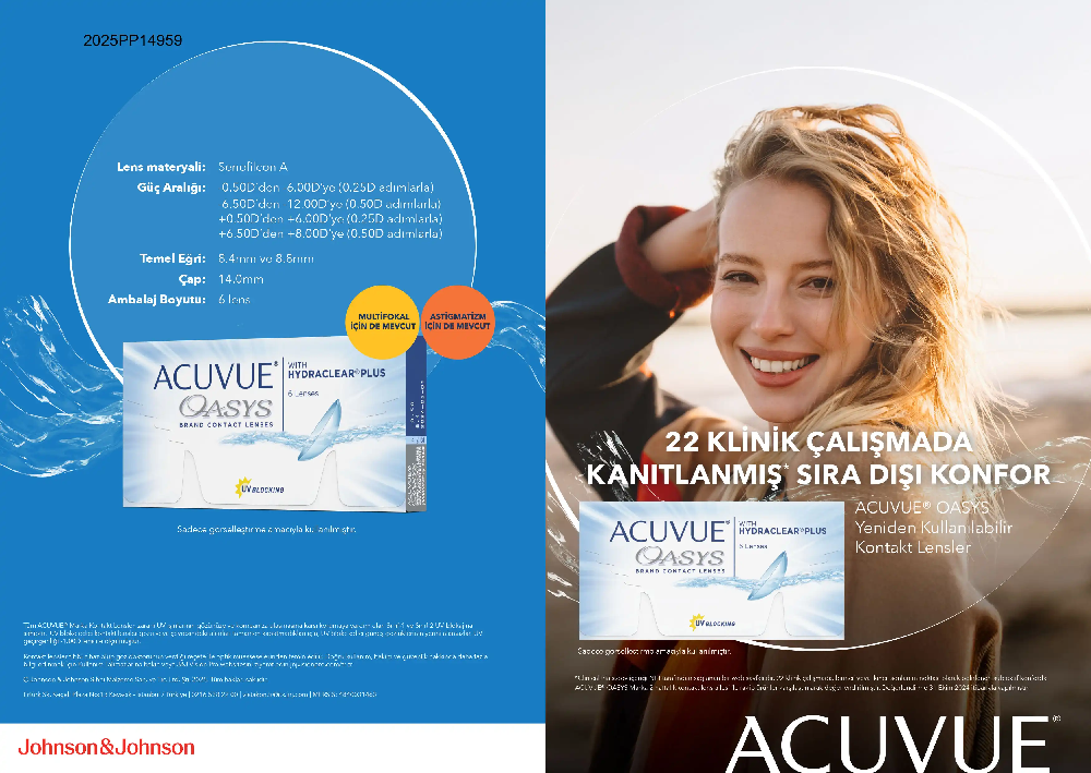 Gözlerinde kuruluk hisseden, gün içinde gözyaşı damlasına ihtiyaç duyan kullanıcılar için geliştirilen Acuvue Oasys, kontakt lens dünyasında konforu ön plana çıkaran özel bir seçenektir.